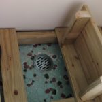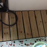 奥沢の古い木造アパートの浴室の床が洗い場との段差があってお年寄りには危険なのですのこで段差をなくしました。排水口も掃除しやすいように外れるようにして防腐剤で塗装して裏にはゴムで隙間を作り水が流れるようにしました。