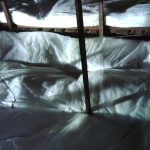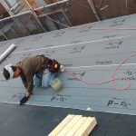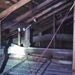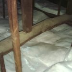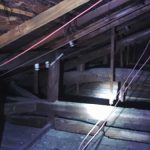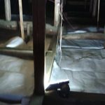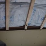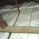 自由が丘戸建の2F天井内の断熱材入れ工事です。元々断熱材が入ってなかったので、夏はとても暑かったそうです。1部屋の天井を撤去して(とても古く雨漏りしていたので)そこから天井上に登って断熱材(グラスウールt=100)を敷き詰めました。
